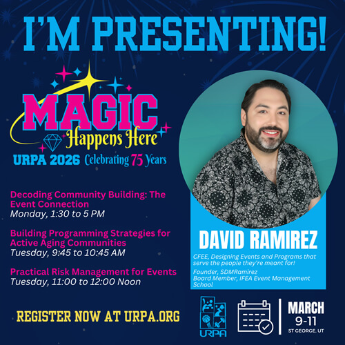 S. David Ramirez S. David Ramirez, CFEE, is an award-winning event professional and technologist. He leads SDMRamirez, serving events and economic development agencies nationwide. He serves on boards of IFEA Foundation and TFEA and teaches at the NRPA/IFEA Event Management School.