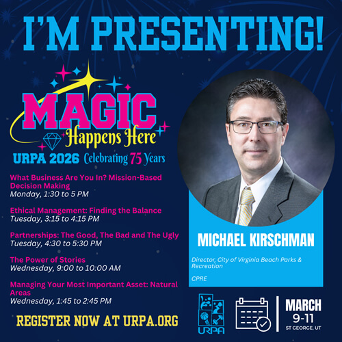 Michael Kirschman Michael Kirschman is the Virginia Beach Director of Parks and Recreation. He has also worked for park systems in NC, IL and OH, the American Samoa EPA, and consulted for the National Park Service. He speaks extensively throughout the country and has instructed at numerous NRPA schools.